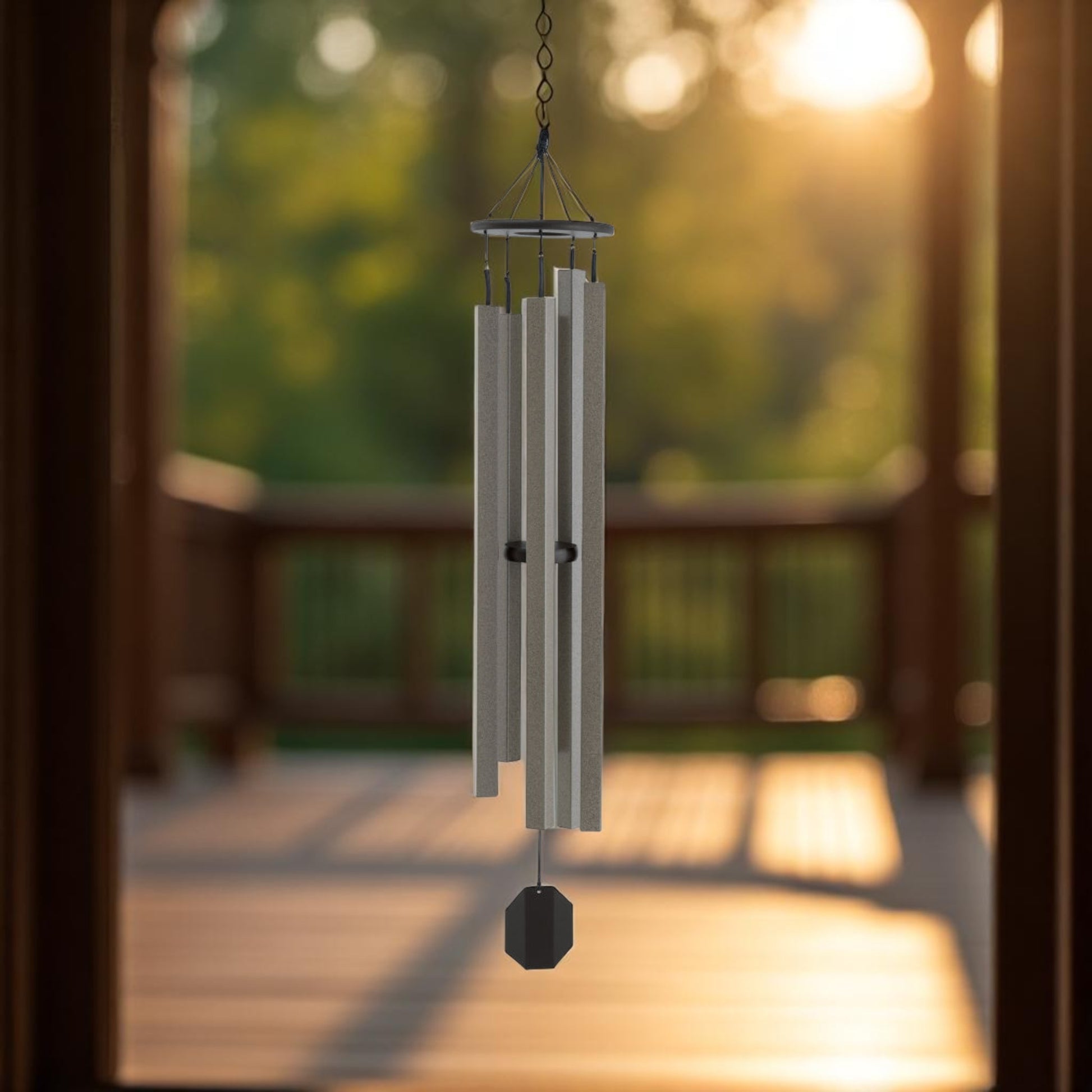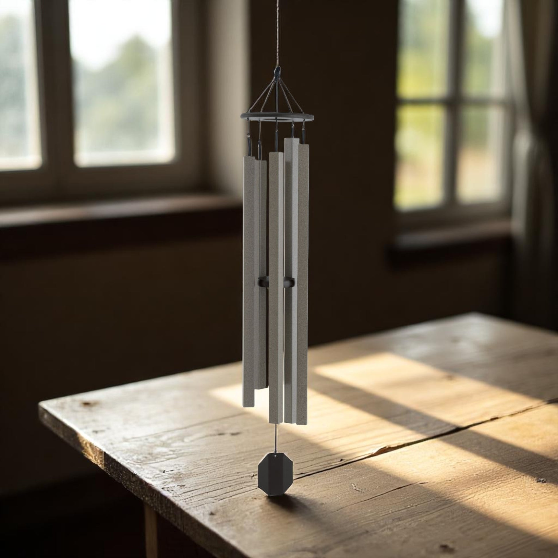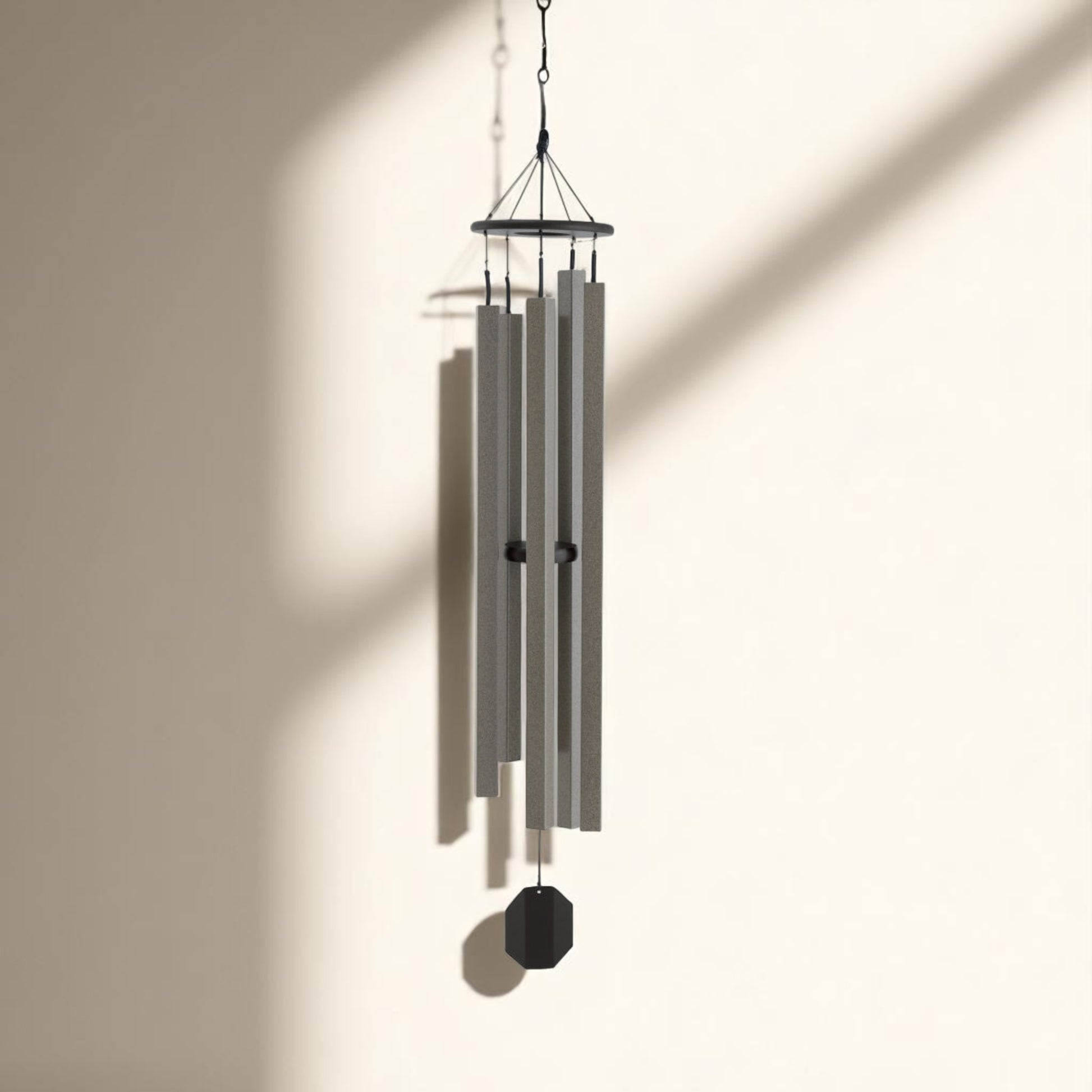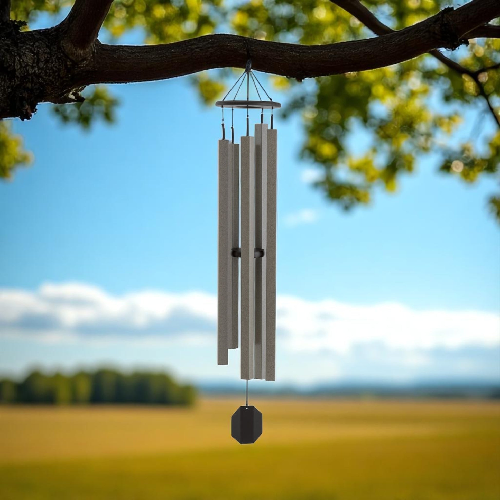 Featuring unique square tubes, these contemporary-style chimes create soft