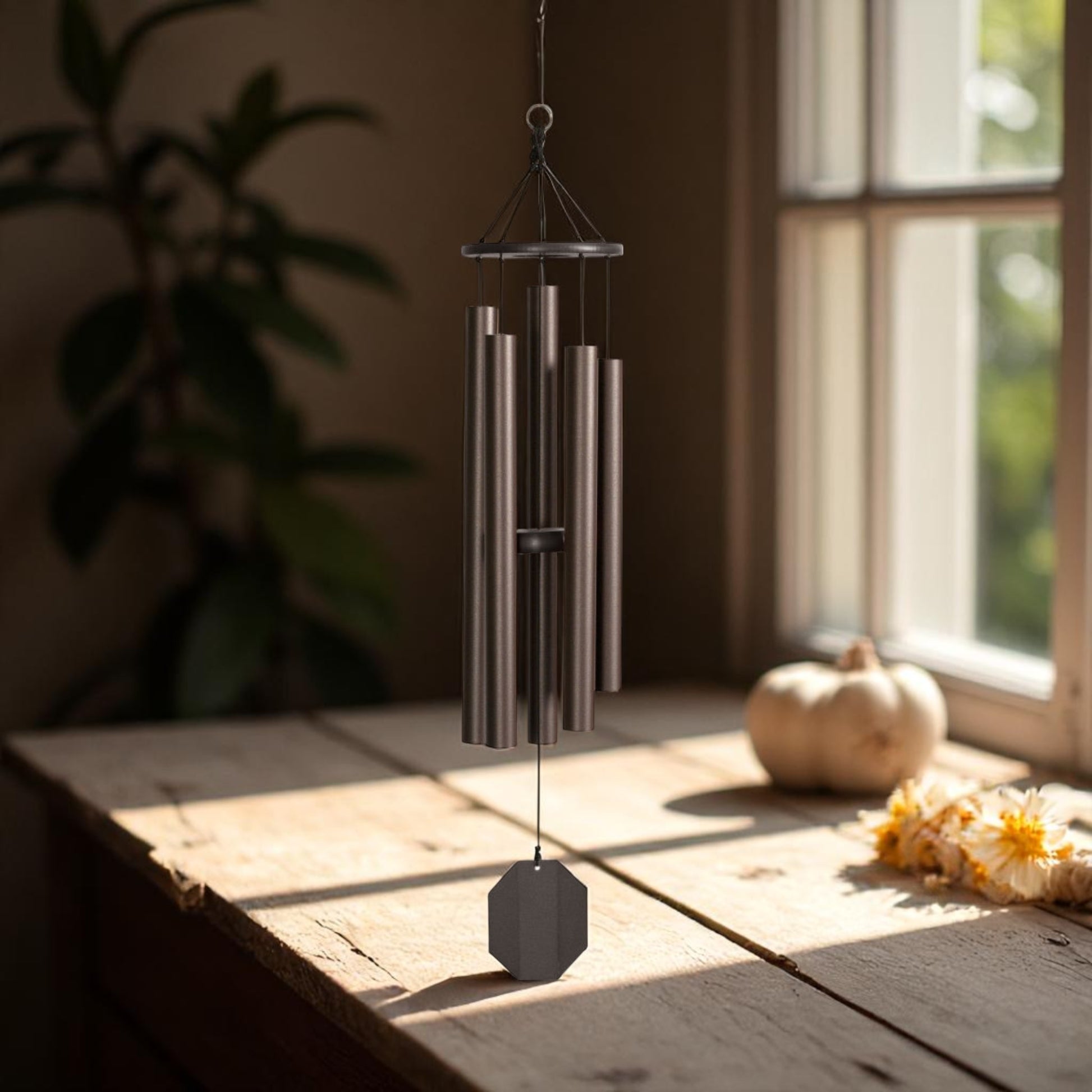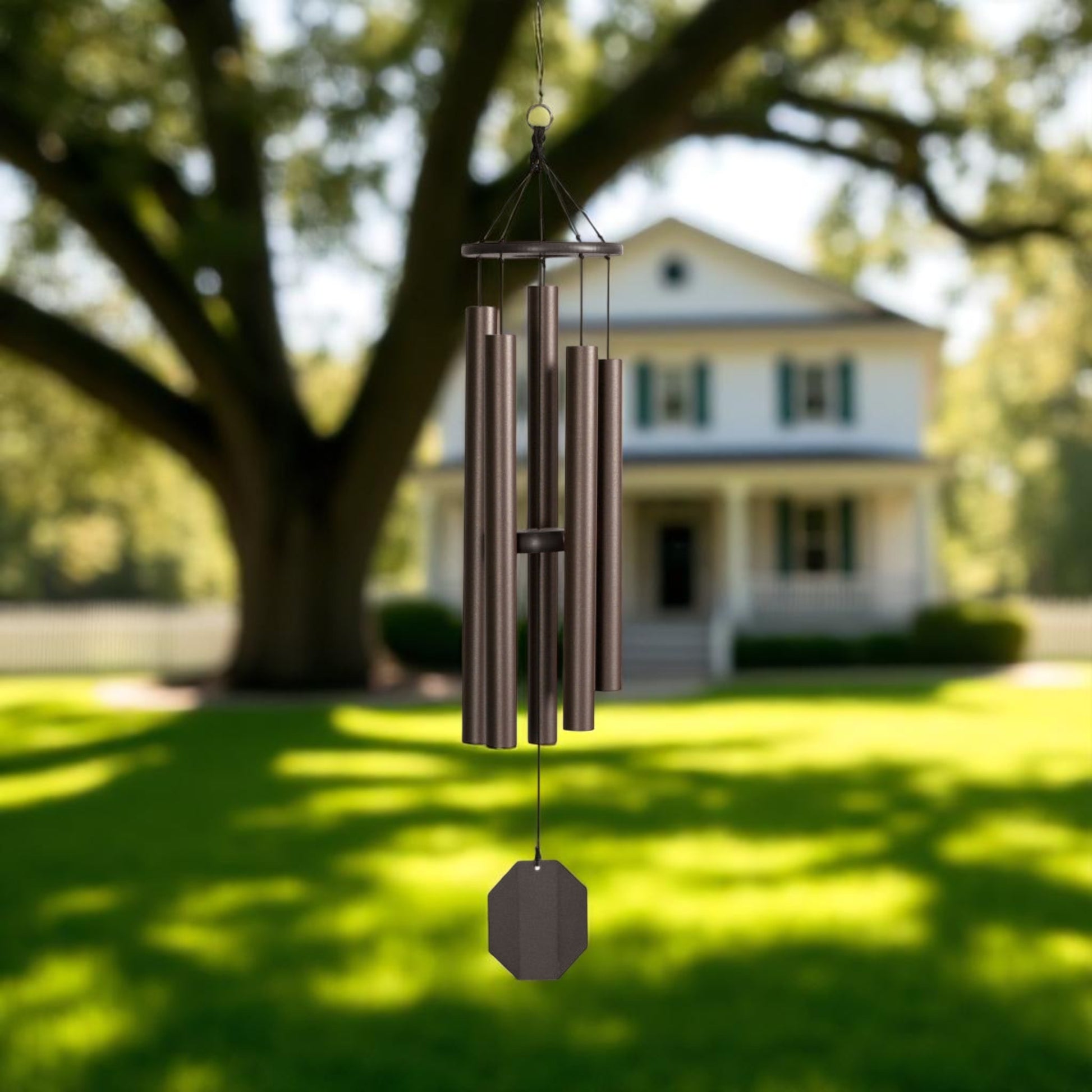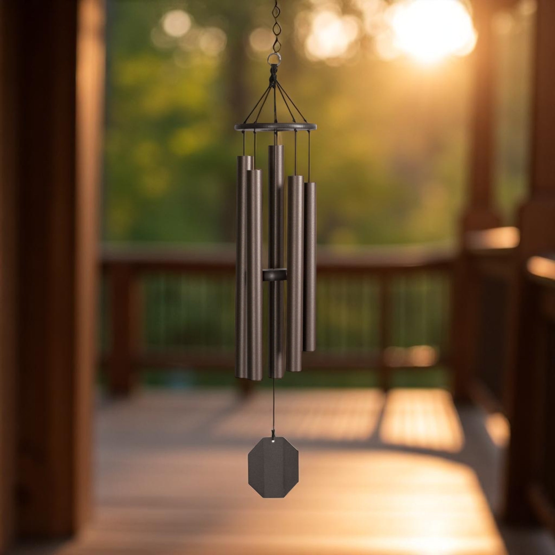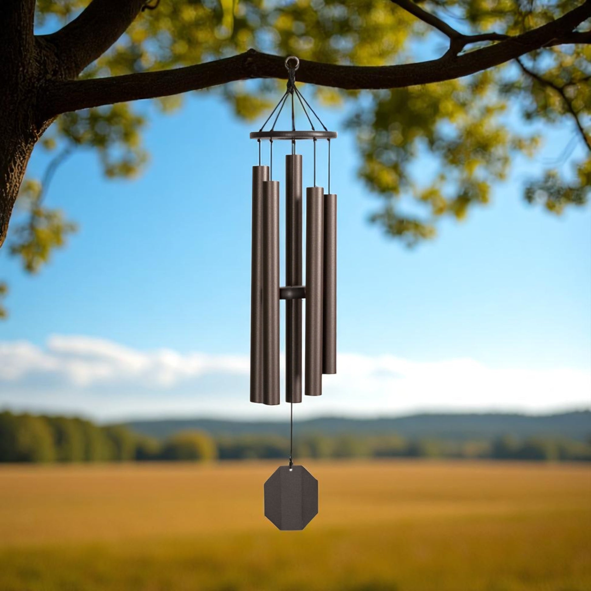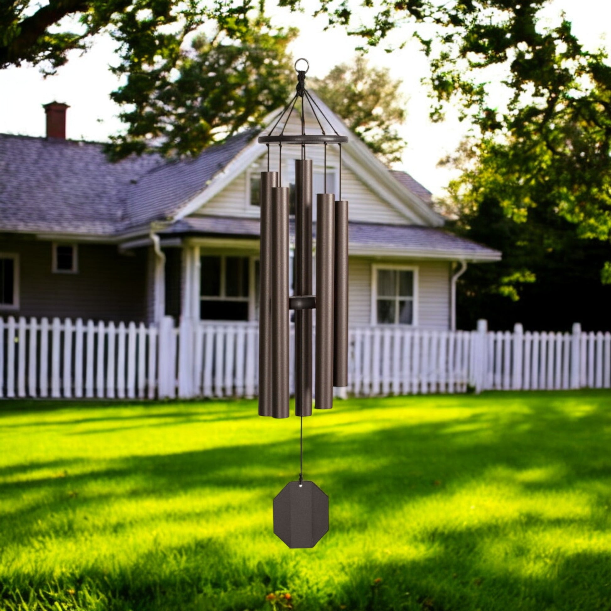 This Beautiful windchime is part of our "Ultimate Series" Its  deep harmonic sound is a widely loved  sound. The Baby Ben creates a deep resonating tone, while the Hummer chime is a favorite for many.